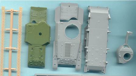 the left is the green Type 97 tank upper hull from the veteran 1/76-scale