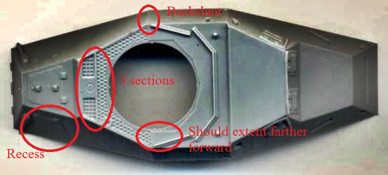 the right engine hatch is RECESSED, while the left one is slightly raised (as