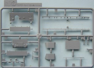 he next sprue is for the HVSS suspension, each unit is made up from 8 parts, although care should be taken to fit the Horizontal springs before glueing anything else in place as the main unit needs to be stretched apart slightly to fit the springs in after which the rest can be glued on making the unit more stable. The units are very well detailed. The last sprue contains the fenders, the extra armour parts, plus a new rear plate.