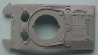 Dragon continues their steady release of what will surely emcompass the whole Sherman family, this time with the M4A3E8(76)W HVSS, thankfully Dragon also include the added armour seen on many Shermans in the European theatre. This is not jut extra parts for the old M4A3, although alot of the parts are also included in the older kit, it does include a new upper hull, the fenders are separate parts and are surely the best option, with the finished article beig better than the solid Trumpeter and have a better definition than the flat PE fender braces in the UM kit. The hull is similar to the older M4A3 hull but with wider front fenders to embrace the wider fenders. there will hopefully soon be a site dedicated to 1/72nd scale Shermans giving a detailed analysis of the merits and drawbacks of all available Shermans in this scale. Once the site is ready I will put a direct link on each and every Sherman page, here I shall just concentrate on what is included in the kit. Top view of the hull with the wider front fenders.