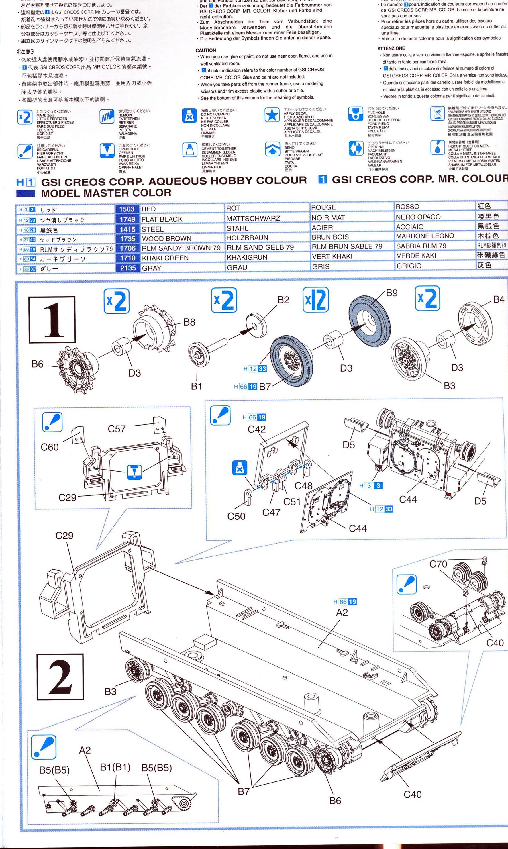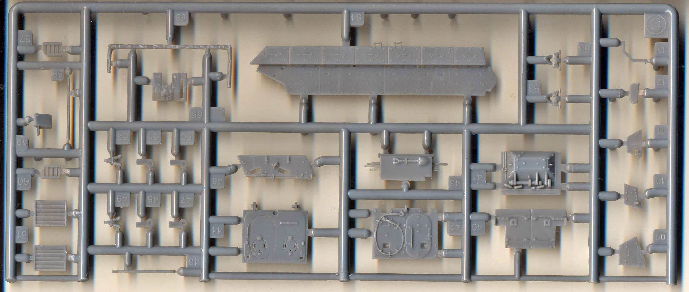 I admit that I don't know a lot about this AFV, so in order not to say anything stupid, I'll just give a scan of the sprues and instructions and hope that this is of any use to someone. I am sure someone more versed in the matter will stand up some day to tell is more. The main sprues. Rubber tracks. Vinyl (!) bags and personal belongings. More vinyl parts !
