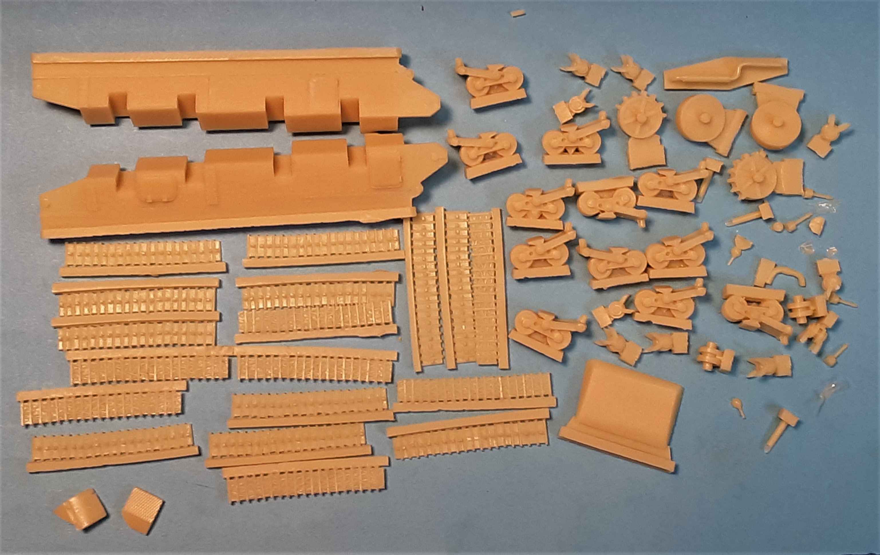 Modelkrak’s 42 or so tank parts and eighteen 3.2 cm-long lengths