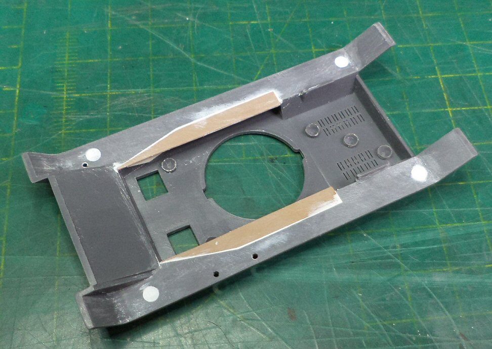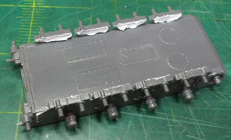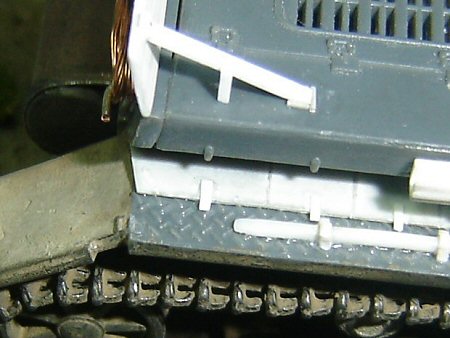 of HSP, springs are also made for the front mudguards. There is a large gap between the rear-mudguards and the rear hull-plate that is filled with a piece of plastic strip as shown in the picture below. |