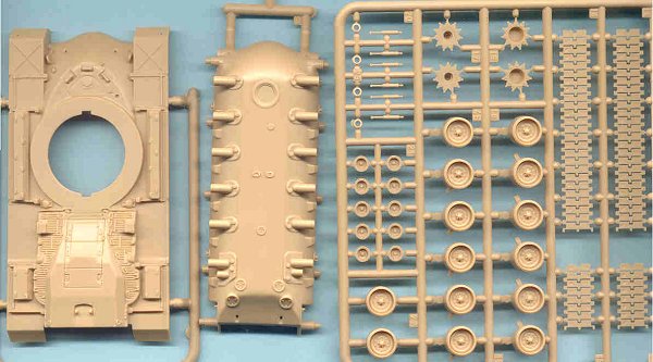 The common roadwheels and return rollers appear accurate and though are molded as one wide wheel (like the ESCI M60 roadwheels) with no groove for the track teeth. [From a former M60 tanker I understand that the M47, M48 and M60 could interchange roadwheels.]