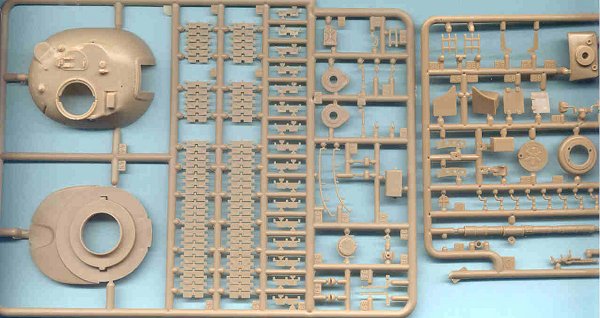 Each M48 kits have about 100 tan styrene plastic injection molded parts not including the link & length tracks. Both models come with the same upper and lower hull pieces and turret sprues which are well detailed. The loaders and drivers hatches are molded shut. The M48 turret is similar to the initial M60 turret so might make for an interesting conversion as Pat Storto has already done.