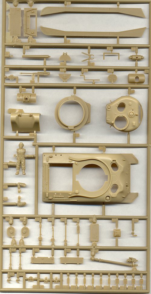 Never has a model generated such controversy and differing opinions, more than this old kit has over the years. Recently re-released by Italeri, this has long been one of ESCI's most popular kits. It is a highly detailed model, with some interior detail, and open hatches. The tools are molded separate, the hull machinegun is positionable, there is a complete engine, and a commander figure is even included. Early versions of the kit include the single piece vinyl tracks, which are very poor, but the later releases, including the new Italeri versions, include the hard plastic, link-and-length variety, which are quite good. This is pretty much all that one could ask for in a kit.