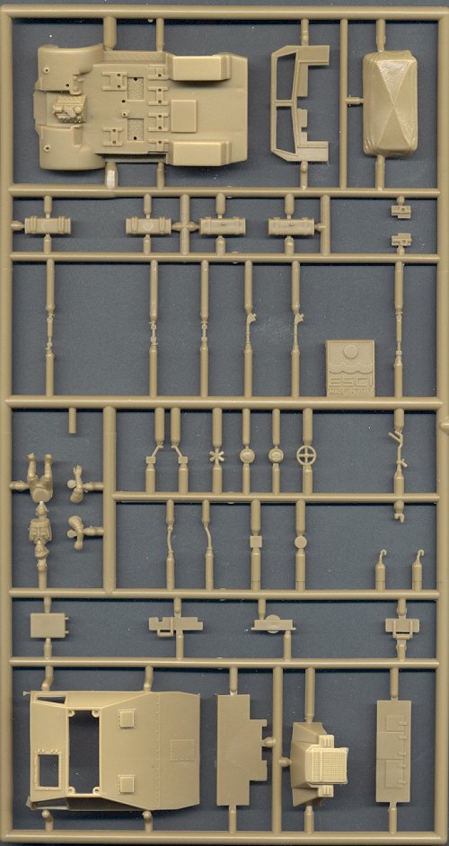 I've said it before, and I'll say it again, it seems that for the older ESCI and Hasegawa kits, their British vehicle kits tend to be much better than the others. I'm not sure why that is, but I certainly do appreciate this kit. The detail and engineering were well ahead of their time, and the quality of the molding is really quite good, with very few sink marks, and no flash. These scans speak for themselves. My only suggestion would have been to include clear plastic for the numerous windows, but considering the quality of clear plastic back in those days, they'd likely not be useable anyway. A friend of mine suggested a great tip for replicating glass in this scale: use the clear plastic from a 2 liter bottle of Coke. The plastic is very thin, clear, and rigid. I'll be giving it a shot when I build this model. Note the detailed undercarriage, interior, and driver figure (in shorts).