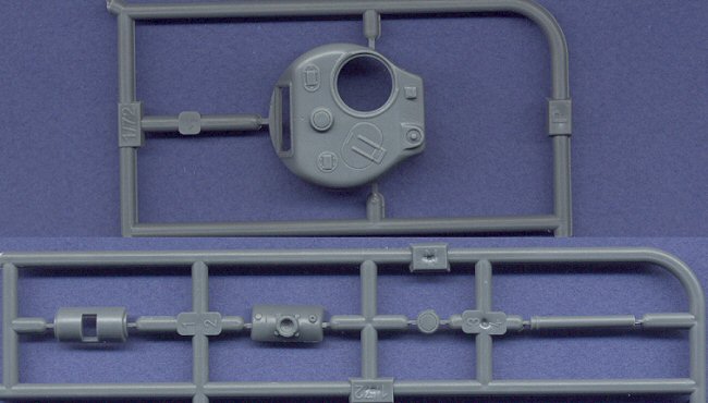 ![]() This kit shares most of its parts with the previously reviewed Eduard and Extratech Sherman kits. The majority of the kit, including the hull and running gear, are the same as the Eduard M4A3 (76)W, and I refer the viewer to that article for a description of those parts. The only sprue differentiating this kit from the 76mm kit is the turret sprue.