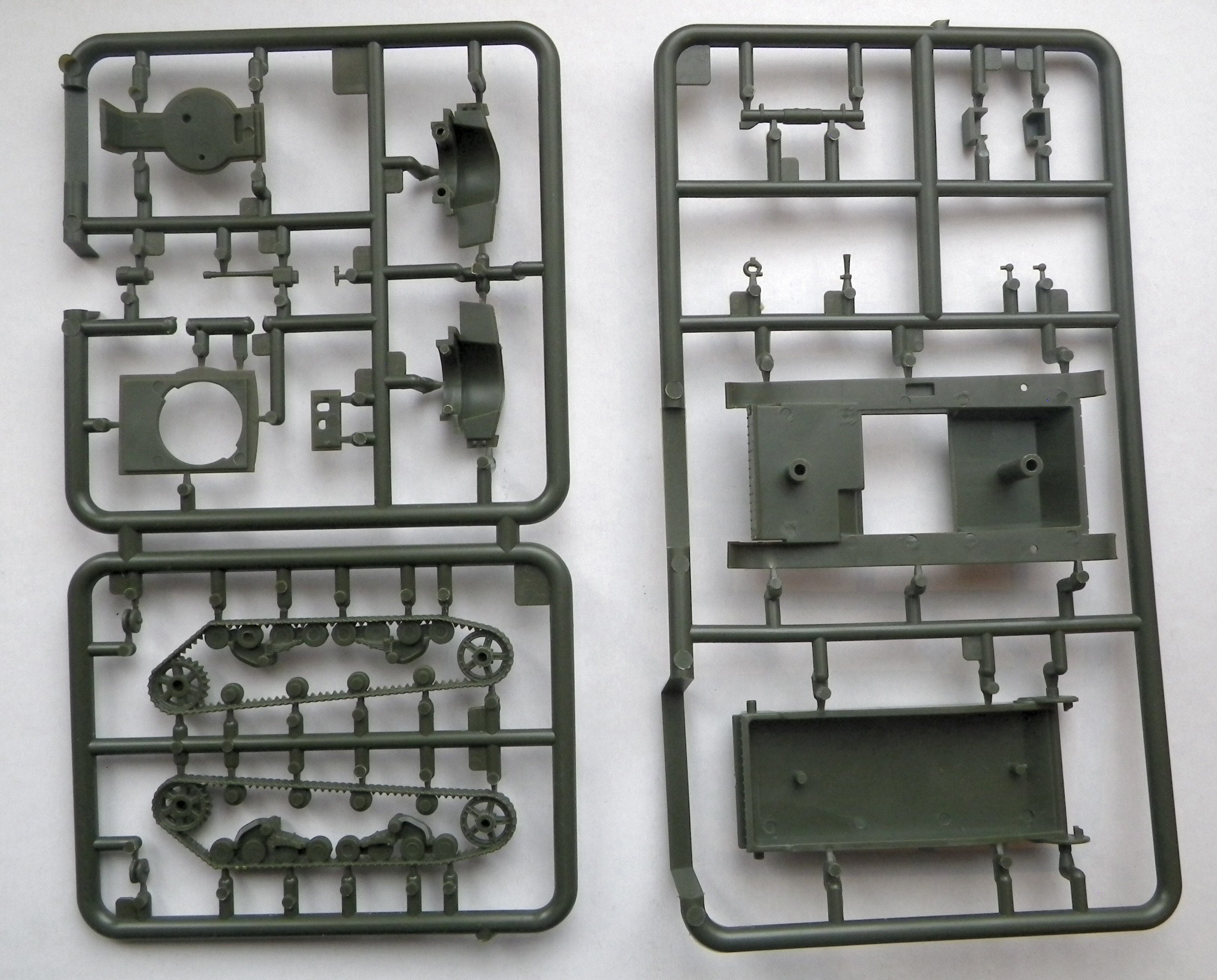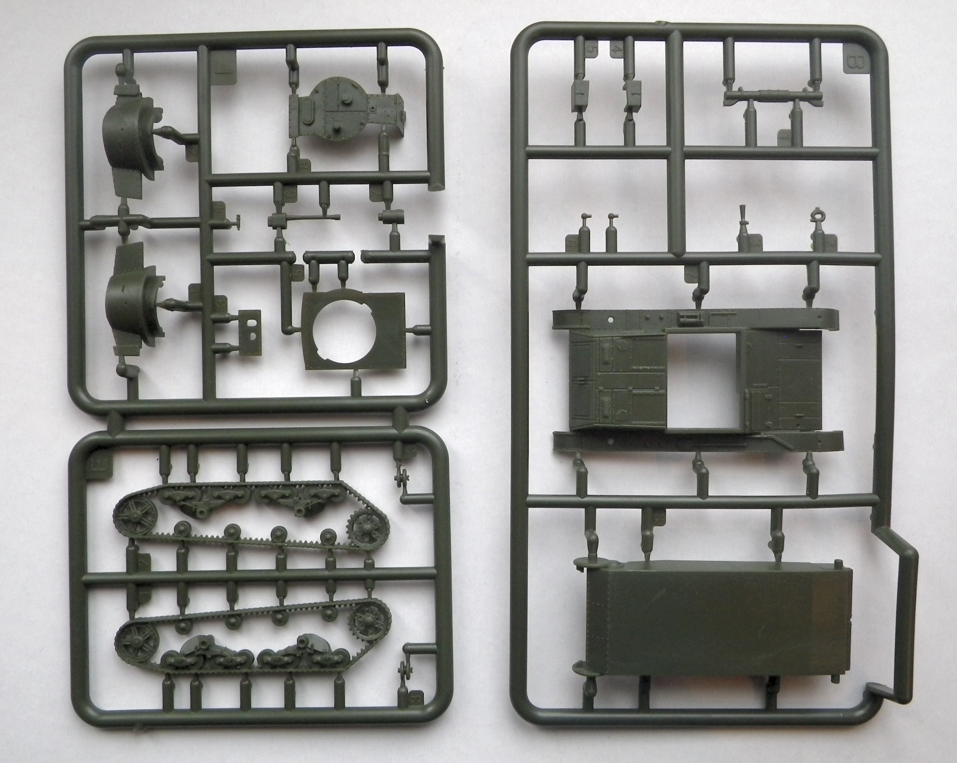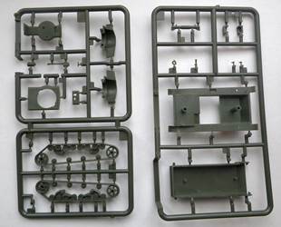 they are not oversized, as in the Mirage 7TP kit). As for a technological division, it can be disappointing that the gun's mantlet is not made as one separate part, and cannot elevate. Moreover, elements of the mantlet are on three turret parts, and it needs care to fit them all to the front plate without cracks. (To tell the truth, my provisionally assembled model features cracks...) It also concerns other turret parts. There are no bottom surfaces under the mantlet and the rear niche, so you must scratchbuild them if you need to make the bottom of the turret visible. (It seems that FtF could have easily done them, but they didn't).