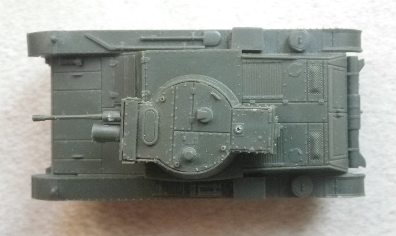 Accuracy The shape of the model in general does not raise any visual doubts as for accuracy. Details on upper surfaces, including division lines between armour plates, and even positions of bolts, agree with a plan in a Polish book "7TP vol.II" by J. Magnuski, R. Szubanski, J.Ledwoch (2009) (Militaria Nr. 317). The arrangement of the tools on the fenders also agrees with the plan. (To be precise, the plan has no tools on the left fender, but they should be there according to photographs and side drawings.) Below are the dimensions (rounded to 0.5 mm after scaling):