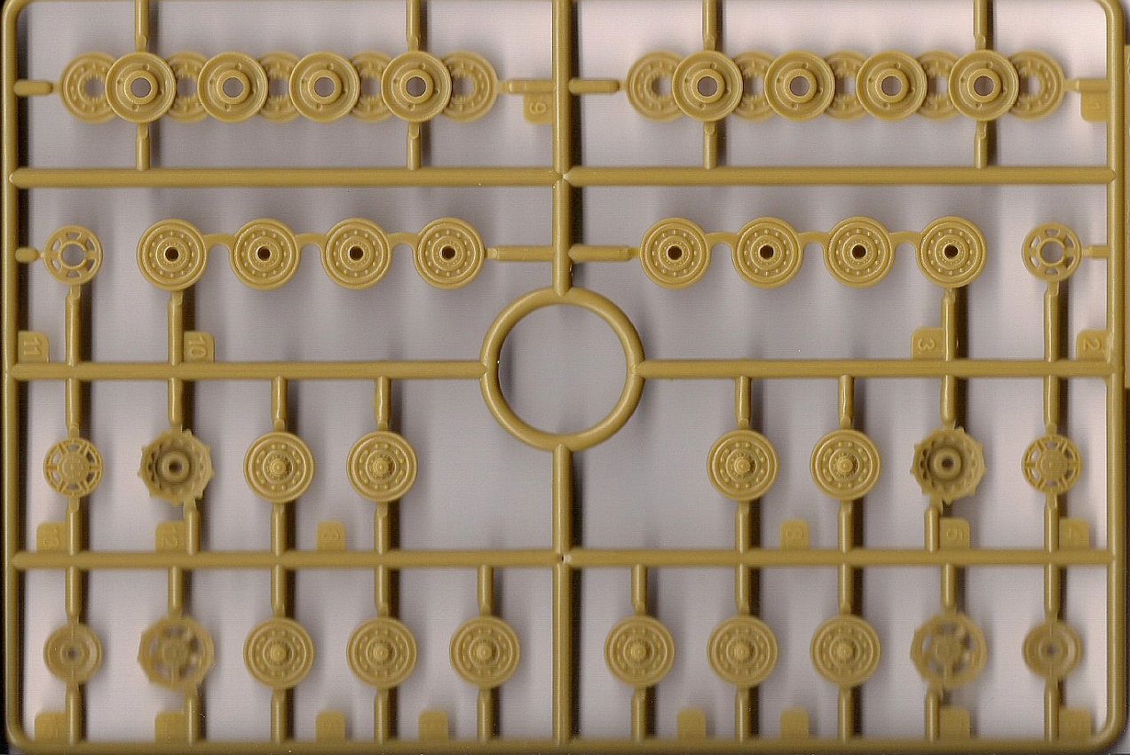 are double-wide. Forces of Valor's linked wheels cannot be seen when built, but the ESCI/Italeri double wide wheels are very obvious. The drive sprocket has a bit of flash to