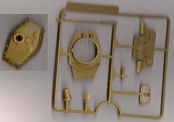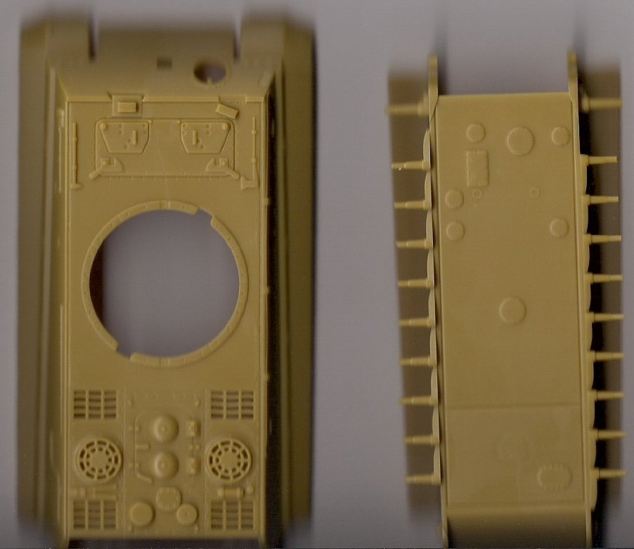 The upper hull is moulded in one piece along with the side skirts. The details are sufficient, however it is missing weld seams on