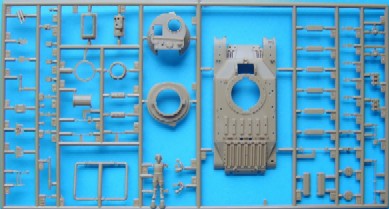 Another Italeri release of one of the old Esci Moulds. This along with the Valentine was one of the nicer releases from Esci. Having said that the kit is not without is's minor faults, but it is the only plastic one on the market The first sprue contains the upper hull and the turret plus most of the other attachments to be fitted. The hull is provided with the drivers hatch as a separate piece and is correct in shape and size, the front stowage bins have the louvered tops, although this is correct a lot of photo's show that a metal plate of some kind has been welded over the top, this was because with the louvers it was easy for the stowage to catch fire and become a danger to the crew, it also obscured vision to effectively reduce the fighting capability of the crew and tank. The turret comes with both hatches open and a separate commanders cupola also with open hatches although these are missing the small pistons mounted on the inside. There is a lot of stowage and boxes to be added to the outside of the turret including 2 smoke dischargers, which are marred by not being completely round and have the edge near the turret flattened, the ends could do with replacing to correct this. There is no turret interior provided like on the valentine kit, so if you wanted to build it with the hatches open you would either have to add the crew or part build the interior.