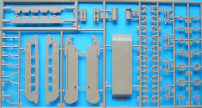 The second sprue contains the lower hull and the running gear along with the exhaust and auxiliary fuel tank. The suspension looks complicated but actually fits together quite easily and is very nicely detailed, shame that most of it is hidden behind the mud chutes and the side skirts.