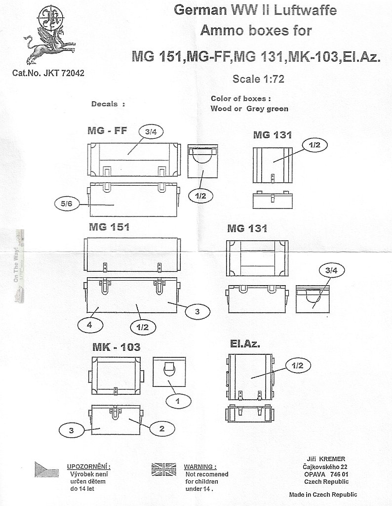 Though not stated, this is the companion set of decals for the resin ammo & box set JKT72010 as previewed here. Like I said for the JKT72042 set above,