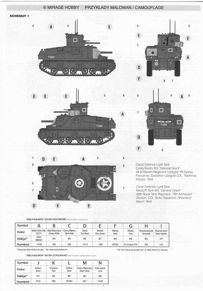 refer for more information and/or comments, to these pages : Kit 72802 Medium Tank LEE MK-I – by Stephen Brezinski : http://www.onthewaymodels.com/articles/Stephen_B_Soviet_Lee/SBrez_Soviet_Lee_article.htm Kit 72804 GRANT Mk I , EL ALAMEIN : http://www.onthewaymodels.com/reviews/Mirage/GrantMk1prev.htm Kit 72805 COMMAND TANK GRANT Mk I (Including a comparison between the Hasegawa and Mirage M3) : http://www.onthewaymodels.com/articles/SBrezinski_Modeling_the_M3_Grant.htm Kit 72806 M3 "Kursk 1943" (Including a comparison between the Hasegawa and Mirage M3) : http://www.onthewaymodels.com/articles/Stephen_B_Soviet_Lee/SBrez_Soviet_Lee_article.htm Kit 729001 M3 "General Grant CDL" by Volker Helms (in German) : http://www.ipmsdeutschland.de/FirstLook/Mirage/Mirage_M3_General_Grant/Mirage_M3_General_Grant.html Kit