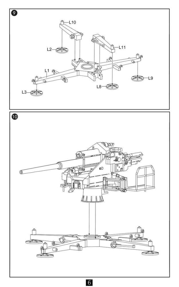 kit. One Flak 40 has been preserved in the Wehrtechnischen Studiensammlung Koblenz. This makes it possible to check the accuracy of the kit. To be honest, Modelcollect has done the job very well. The complex aiming and fire control system are replicated in great detail, with all buttons, shafts and rivets where they should be. In recent years, the new company Modelcollect has built a reputation of extremely well detailed kits and this gun is no exception to the rule. For modellers who like to participate in modelling contests: this is the type of kit you can turn into a winning model. For those who like to make dioramas: a number of spare shells are also included. The crucial part of the kit is the impressive gun barrel. Unlike some other kits in the Modelcollect range, you do not get a metal barrel. You will have to glue two halves together, with the inevitable task to make the joint invisible. Luckily, the parts fit well and give only a small joint. By successively sanding with 2000, 4000 and 6000 sanding paper, I was able to remove the joint quite easily. The same has to be done with the gun’s breach block (somewhat more difficult) and elevation mechanism. Often, also ejection marks are a delicate point. As Modelcollect is a modern company, they have taken this into account when designing the kit. All ejection marks are situated on places where they will not be visible when your kit is finished. The one exception are the ejection marks on the inside of the side supports of the gun. As the inside of these supports is completely flat, it should not be a problem to hide them with the magic duo ‘filler + sanding paper’. Some critical remarks remain for the building instructions. Some steps in the building process require a close look as the instructions are not always that clear. A pity is also the lack of detail in the painting scheme. Modelcollect suggest two options: German grey or German dark yellow. The example at the Wehrtechnischen Studiensammlung Koblenz however suggests much more detail (e.g. control wheels and instrument panels in black, several buttons and handles in red). No painting details are revealed for the shells either. These have almost the size of a man, so they are large enough to be painted with a lot of detail. Conclusion: A highly