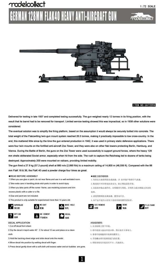 The kit By making a 1:72 replica of the Flak 40, the Chinese company Modelcollect is again showing its creativity. Apart from a hard-to-get resin copy of the company Extratech, this gun has never been produced before as a regular plastic kit. With the Modelcollect kit, this impressive anti-aircraft now comes in reach of every modeller. Modelcollect