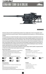 Some history One of the best German anti-aircraft guns in WWII was without any doubt the Flak 40. This heavy 128 mm gun could fire a shell of 26 kg as high as 35.000 feet, where it would burst apart in a deadly cloud of shrapnel. Some sources even state an altitude of 48.500 feet. This was high enough to take even the highest flying allied bombers out of the sky. Design of the gun already begun in 1936, three years before the official outbreak of the war. Not that there were any direct needs for such a powerful gun, but rumours spread In German headquarters that the allied powers were developing a high altitude bomber. The first prototype was ready in 1937. Besides its extreme power, the tests also revealed the main drawback of the gun. With its weight of 13 tons, it was too heavy to be used as a mobile gun and thus useless for frontline service. Attempts were made by the company Meiler to design a special trailer for towing the gun, but as trailer and gun weighed over 26 tons, this was not a success either. Not more than six of these trailers would have been made. A last try to give the gun a certain mobility, was to mount it on flat railway cars. This solution wasnot successful either. Finally, the German army chose to use the guns only from (fortified) static positions, where they could defend industrial complexes or towns. When the war started in 1939, no gun had been produced. As long as Germany was on the winning hand, this heavy anti-aircraft gun was no priority. It was felt that the better known 88 mm anti-aircraft gun Flak 36 was suitable enough for the job. This changed after the first bombardments on Germany, when an urgent need grew to protect the Reich. Besides shooting higher, a more powerful anti-aircraft gun can start shooting earlier at mid-altitude flying bombers and hold them under fire for a longer period of time. As such, the efficiency of such a gun is greater. For the Germans however, this was still not powerful enough. To augment the gun’s efficiency even more, a special version was built with two guns on one mount. The double Flak or Zwillingsflak 40 was born. Nearly all these guns were placed on top of specially designed anti-aircraft towers, as they could be found in Hamburg, Berlin and Vienna. Pictures prove that at least one Zwillingsflak was also used in the defence of the French port of Brest. Production of the Flak 40 started in 1942. By the end of the war 1.125 of these heavy anti-aircraft guns had been produced, of which 34 were Zwillingsflak.