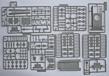 The kit The kit comes with a lot of plastic. Not less than twelve sprues are included; eight smaller ones for the hull and four for the gun. Four sprues make up the suspension system and the tracks. The wheels and drive sprockets are nicely detailed, as are the tracks. The latter consist of plastic. It takes some time to build them, but you will end up with a fine track, nicely following the wheels and drive sprocket. The next step is the engine. The kit offers you all parts to make an HL230 Maybach engine, together with its cooling system. Unlike some other Modelcollect kits however, there is no possibility to show the engine compartment with its hatch open. I would not suggest to try to open the engine compartment yourself, as you will probably end up with damage, rather than a good result. Therefore, it may be a better idea to keep the engine for your scrap box and use it somewhere in a diorama. The hull itself is nicely detailed. Also the tools and cables are included to give the crew the chance to do some minor repairs in the field. These items are not always included in other of Modelcollect's ‘paper panzer’ kits. The 128 mm Zwillingsflak is an even bigger pleasure to build. Modelcollect has done a superb job. Just everything is in place where it should be. All buttons, shafts and rivets are replicated in great detail. If you want to superdetail the kit, you could add some tubes and electrical wiring. With the help of good reference pictures, these can be easily modelled with lead wire. The main eye-catcher of the kit however remains the 128 mm Flak 40 gun, with its impressive barrel. Unlike some other kits in the Modelcollect range, you do not get a metal barrel. You will have to glue two halves together, with the inevitable task to make the joint invisible. Luckily, the parts fit well and give only a small joint. By successively sanding with 2000, 4000 and 6000 sanding paper, I was able to remove the joint quite easily. The same has to be done with the gun’s elevation mechanism and breach blocks. The latter is somewhat more difficult, but luckily the joint in the breach blocks can be camouflaged behind another part.