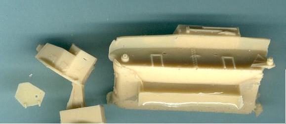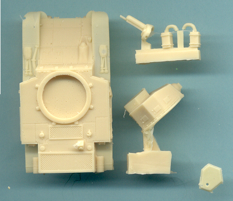 Here is another shot of the turret and hull showing the pore plugs that will have to be cut off. This turret is based on that in the Mirage Hobby kit 72670 except that the M3 riveted turret did not have the rectangular viewports around the sides of the turret. A glitch in the Modell Trans turret is that according in my reference photos the flaps over the turret viewports should be on the inside of the turret not on the outside as Modell Trans gives us. |