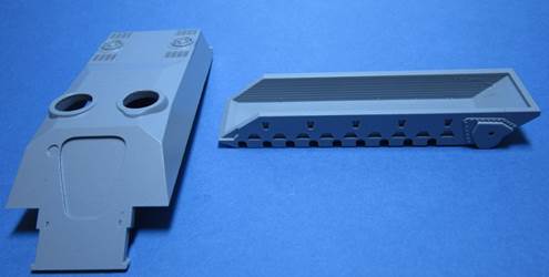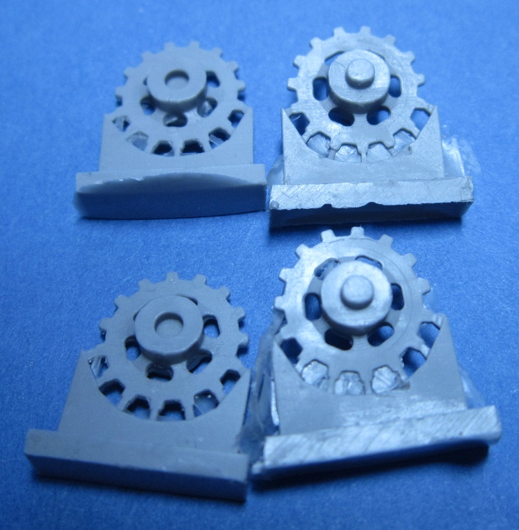 The sprockets... The road-wheels... The idler connector... The hull components... The gun... The mantlet... The rangefinder... The commanders cupola... The exhausts...