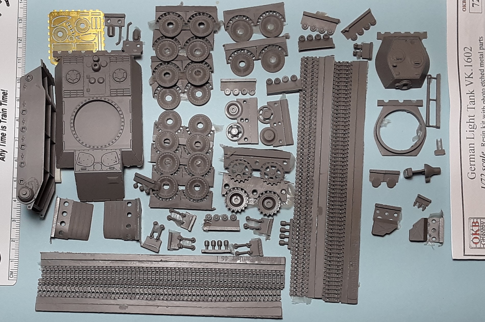 approximately about 72 cast resin parts on pour plugs and 17 etched