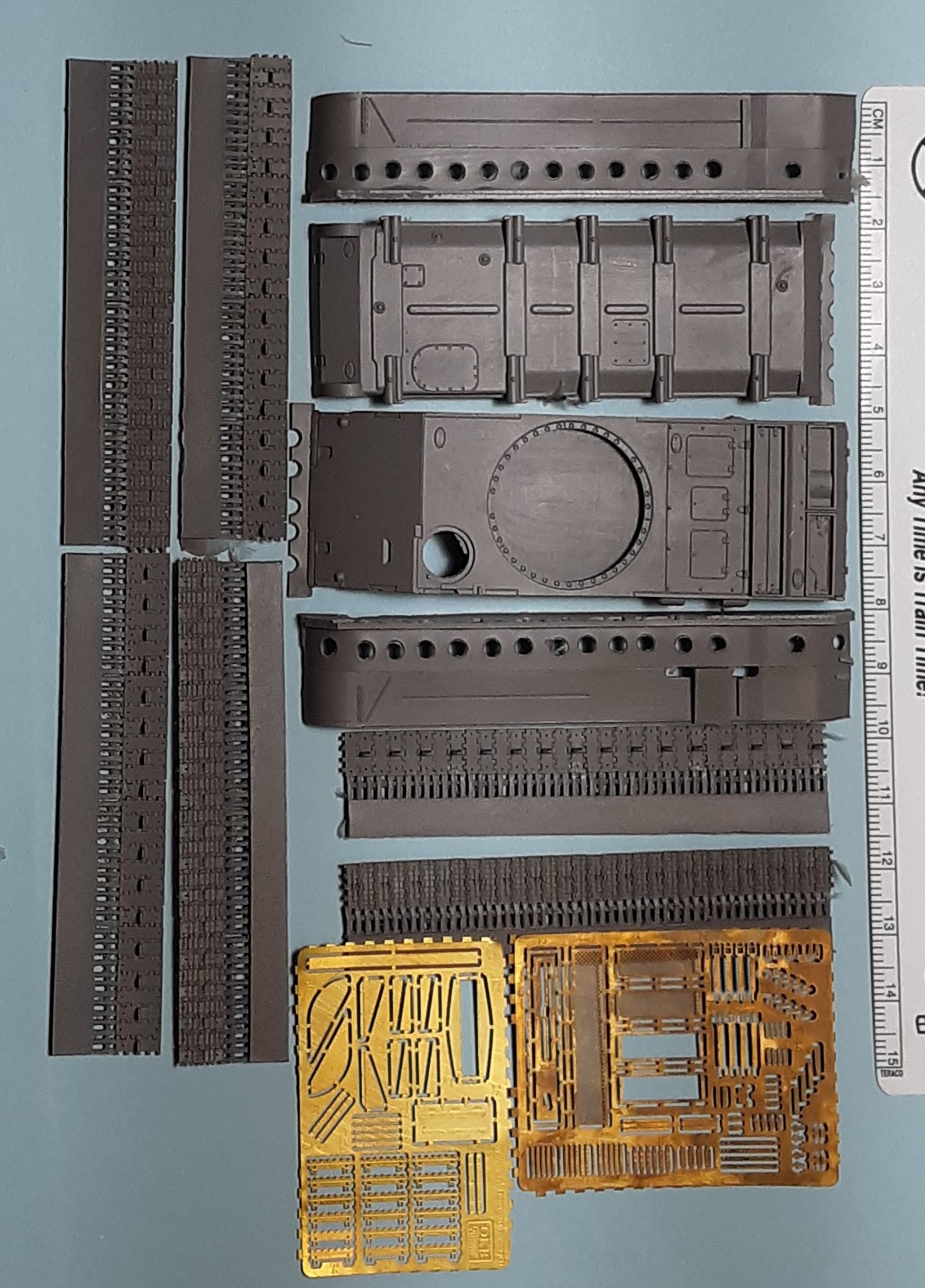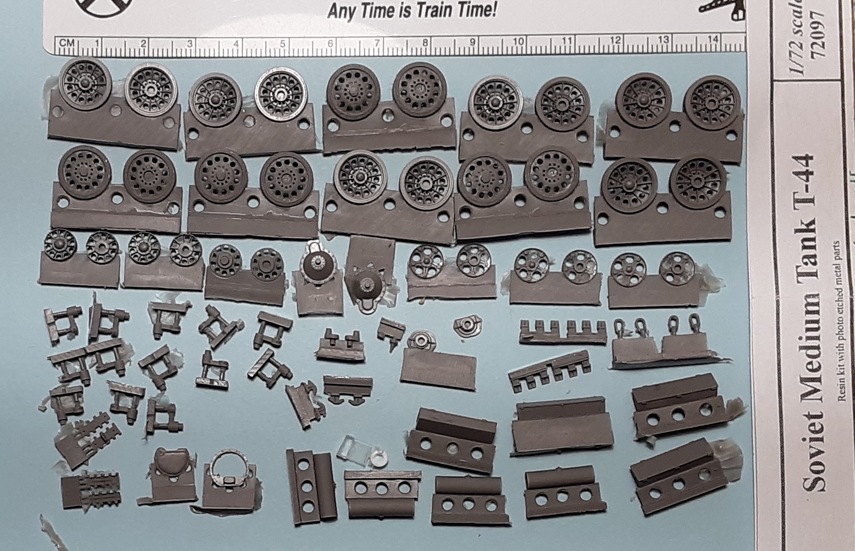 resin parts, including six 7.5-cm lengths of track, plus 104 etched