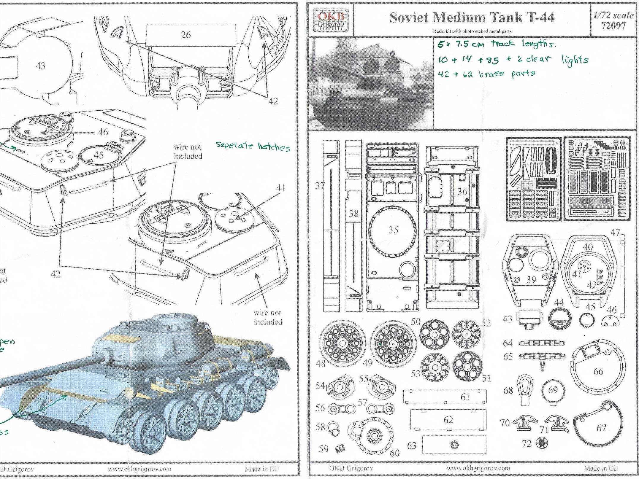 T-44 model the bump stops (parts 59) are separate and to be glued