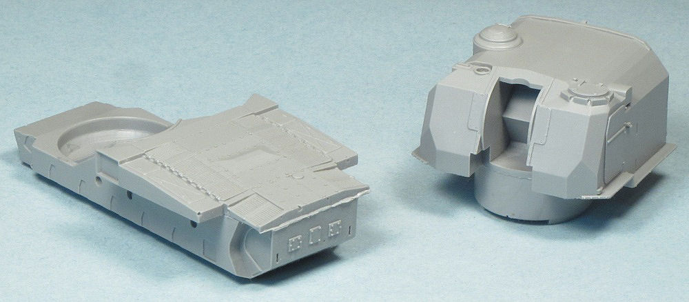 The resin parts are apparently created from 3D printed masters, and feature excellent detail. The surfaces of all the parts are smooth and free of any artifacts of the 3D printing process. Interestingly, the detail on the cab (turret) is sharper than on the hull. The