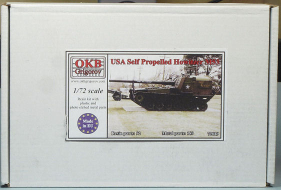Like the real subjects, OKB Grigorov's M53 and M55 kits are identical, aside from the gun barrel and travel lock. The two kits share a common instruction sheet, a double-sided A4 page with CAD renderings of the finished model, showing the components in place. These are generally OK, but for the very complex photo-etched spade assembly, some step-by-step instructions would be helpful. No finishing instructions or decals are included. The kit comes packed securely in a heavy cardboard box, with a small colour photo of a preserved M53 on the boxtop. |
