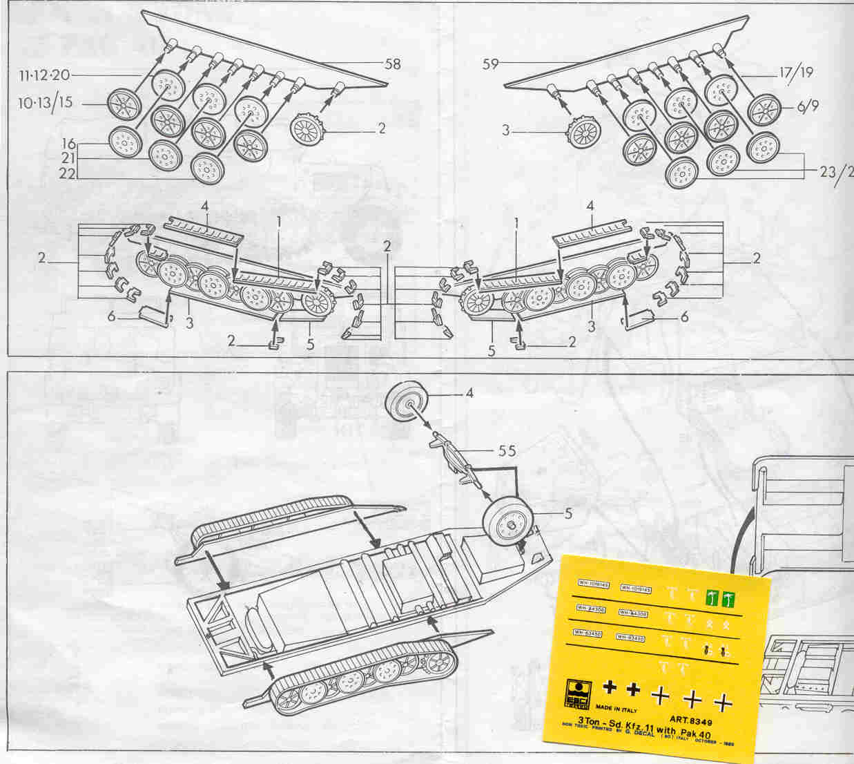 As we see in the scan of the parts, the suspension (wheels & tracks)