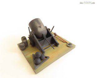 the pre-paint photo you will notice the exquisite tongs mentioned above. On the real gun, tongs were used by the crew to lift and place a cannon ball into the barrel's muzzle. My kit's tongs